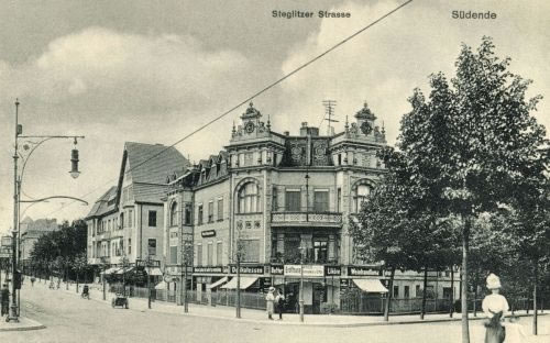 Steglitzer Straße Ecke Wilhelmstraße (seit 1957 Grabertstraße) mit Blick Richtung Steglitz